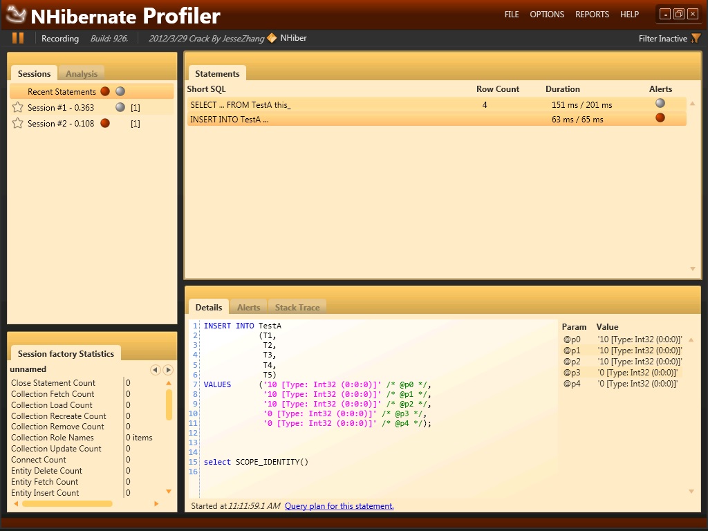 HibernatingRhinos.Profiler.Appender.NHibernate.NHibernateProfiler.Initialize(); --这句