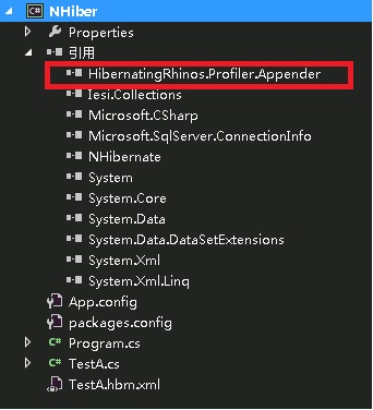 在项目中引用HibernatingRhinos.Profiler.Appender的dll
